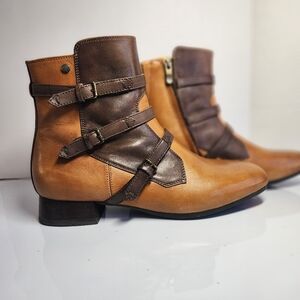 Bussola Italian 'Lausanne' Two-Tone Toffee Chocolate Leather Boots Womens 8.5