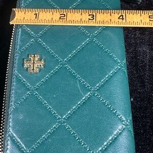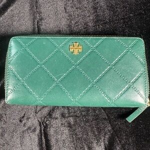 Tory Burch Georgia Zip Continental Wallet Malachite Green Leather gold accents