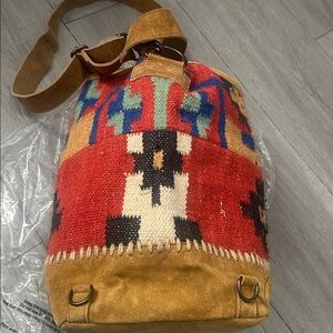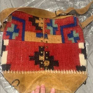 Embrace a bohemian vibe with this stylish crossbody bag. Featuring a vibrant red and tan design, it's perfect for adding a pop of color to any outfit. Ideal for everyday use.