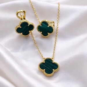 This exquisite jewelry set features a stunning clover design in gold and green. Perfect for adding a touch of elegance to any outfit.