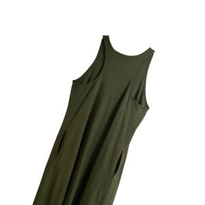 Athleta Olive Flowy Racerback Midi Tank Dress Women Size S Soft Stretch Pockets