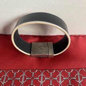Uno de 50 Vintage Black Leather Bracelet with Silver Clasp.