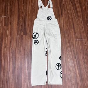 We The Free Peace Sign Overalls Urban Cream Beige Wide Leg Jumpsuit Cotton XS