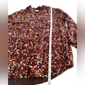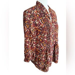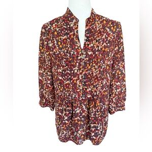 Coldwater Creek Multicolor Brown Orange Red Fall Blouse Button 3/4 Sleeve- S (8)