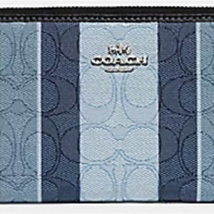 Signature jacquard and smooth leather| Nine credit card slots| Bill compartments| ID window| Zip coin pocket| Zip-around closure| 6 1/2" (L) x 3 3/4" (H) x 3/4" (W)Style No. C8419