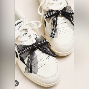Black ribbon shoe charms with rhinestones from Anthropologie. These are sold out on Anthropologie.