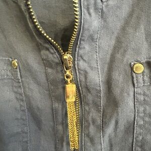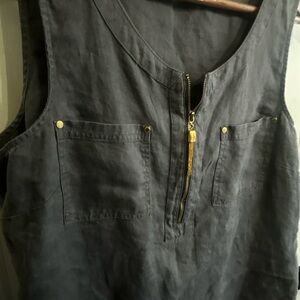 Excellent condition Ellen Tracy Gray Sleeveless linen tunic size L. Gold details