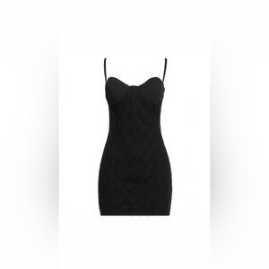 Chic black lace chemise with elegant design. Perfect for intimate occasions.