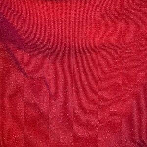 I’m obsessed with this dress! It has beautiful sparkly red fabric that has ruching in the front and back. The fabric has a great amount of stretch & can easily be worn by someone 2-3 sizes up. It’s floor length (I’m 6’2” and was wearing 4 in heels)!!! It’s only been worn once to an indoor event and has no damage!
