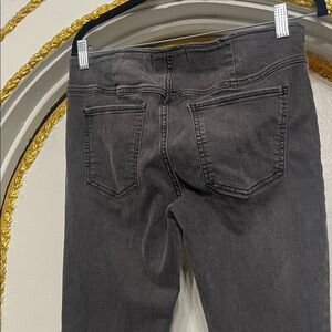 Authentic Free People jeans in a flattering high-rise silhouette with a subtle flare leg. Soft washed stretch gray/black denim with a lived-in feel that Free People is known for — easy, effortless, and endlessly wearable.