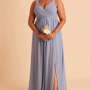 This chic sleeveless gray maxi dress offers a sophisticated look for any event. Its elegant design and subtle slit make it a perfect choice for evening occasions. In DUSTY BLUE COLOR