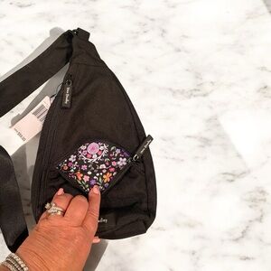 Vera Bradley Lighten Up Essential Sling Bag - Black with Floral Interior NWT