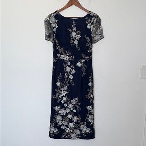 JS Collections Esmerelda Midi Cocktail Dress Navy Embroidered Fits Like Sz 6 NWT
