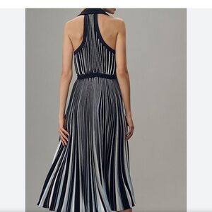 Anthropologie Blue and White Striped Halter Pleated Midi Dress Size Medium