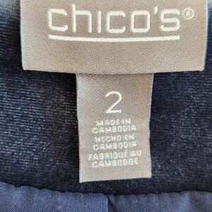 Elegant quilted design. Luxurious velvet texture with a shimmer. Front zipper. Slit pockets. Mandarin collar. Excellent used condition. Chico's size 2 is a US size 12/14.