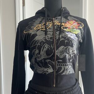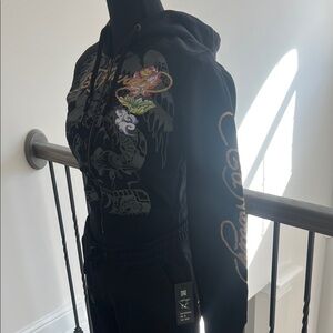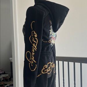 Ed Hardy Black and Gold Graphic Zip-Up and Sweatpants (Complete Outfit)
