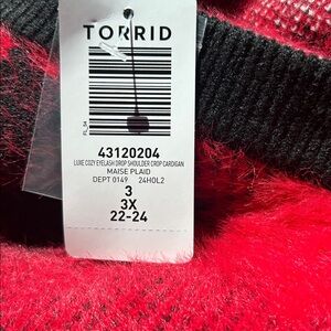 Torrid Red and Black Plaid Cardigan