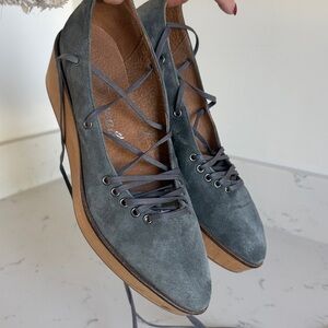 Free People Darcy Wood Platform lace up Shoes Grey Color Size 37/6.5