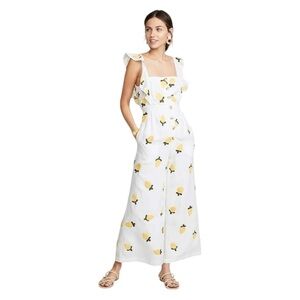 In okay condition- missing one set of the adjustable buttons, the button fly section of the jumpsuit is not sewn together would need to be re sewn