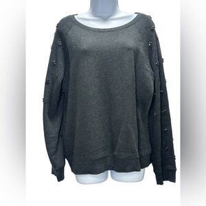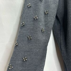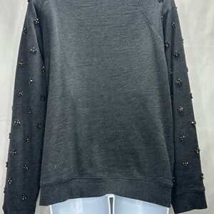 Chic charcoal sweater with stylish embellishments. Ideal for casual wear.