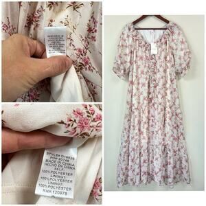 NWT Entro Floral Boho Cottagecore S Maxi Dress Ruffle Tiered Pink Cream