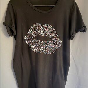 Lauren Moshi Edda Crystal Sprinkle Lip Tee Black Tee Soze Small