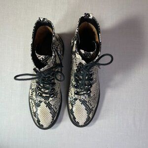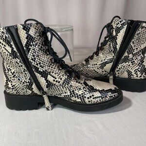 Paolo Trinity Boots Snakeskin Print Moto Combat Lace Up Zipper Size 8