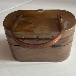 This vintage brown cosmetic case offers a unique and stylish way to store your beauty essentials. Its classic design adds a touch of elegance to your collection.