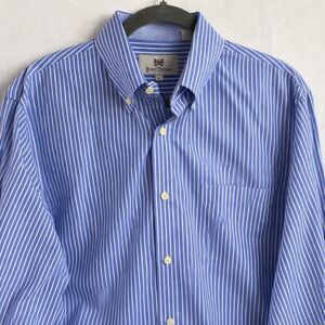Hickey Freeman Blue Stripe Men’s L Dress Shirt 100% Cotton Button Front