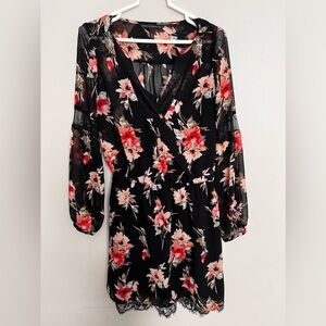 White House black market long sleeve inset floral dress in good used condition.