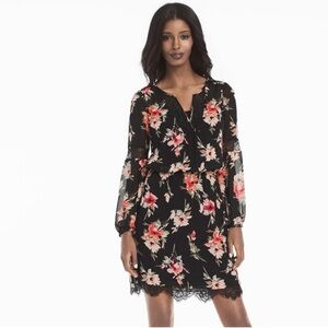 White House Black Market Long Sleeve Inset Floral Dress Size 4