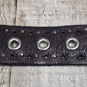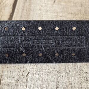 Fossil Genuine Leather Cutout Brushed Nickel Waist Belt Black Western Women's L