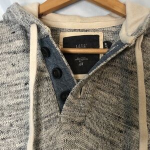 H&M L.O.G.G. Mens Hooded Gray Sweater Long Sleeve 100% cotton Size S