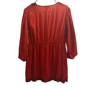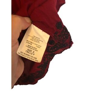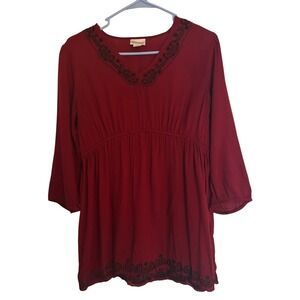 Motherhood Maternity Burgundy Embroidered V Neck Blouse Tunic 3/4 Sleeve Size S