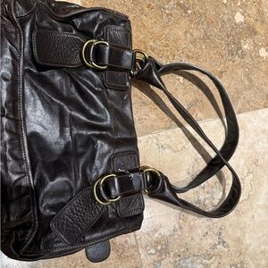 Chic black leather shoulder bag by Chloe. Features gold-tone hardware and multiple pockets. Perfect for everyday use.