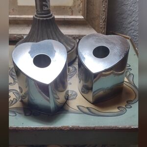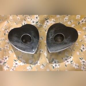 Pair of Vintage Stainless Steel Heart Shaped Votive & Taper Candle Holders🕯️