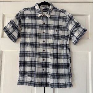 Excellent used condition. the Athleta Brooklyn Plaid Ankle Pants. They are lightweight, pull-on pants with a black and white plaid pattern that gives them a gray appearance, and they feature a black tuxedo stripe down the side of each leg. These Athleta Brooklyn Ankle Pants in size 10 Petite are designed for active women. The pants feature a pull-on style with an elastic back and zippered pockets for convenience.