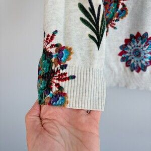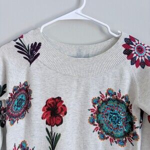 Desigual Knit Sweater Lightweight Sequin Floral Teacher Gray Size Small