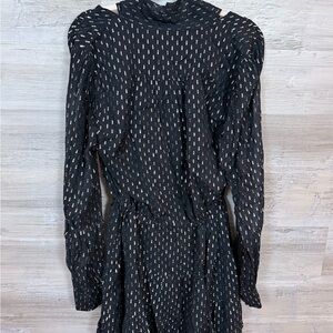 PAIGE NWT Black & Silver Metallic Silk Blend Mini Dress Size L