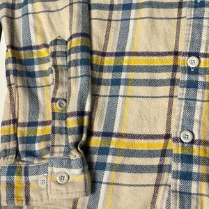 Keywords: Patagonia flannel shirt, organic cotton, plaid shirt, button down shirt, mens medium, beige blue flannel, casual shirt, outdoor clothing, sustainable fashion, flannel, long sleeve shirt, menswear, classic plaid, two pocket shirt