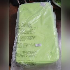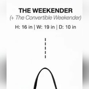 New with tags and in the original bag it arrived in BEIS Weekender bag (dimensions in photos) in Citron, which is a discontinued color. Bottom compartment can be used for shoes or toiletries. Inside is roomy and holds enough for a long weekend. Great bag, easy to clean material.