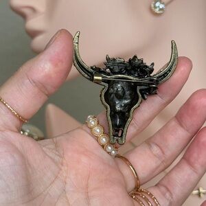 Colorful Rhinestone Bull Skull Brooch.
