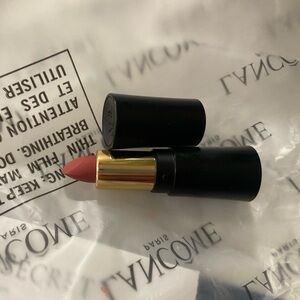 Lancôme skincare and makeup set featuring a red quilted pouch. Includes comfort toner, crème mousse, Renergie trial products, lipstick, and mascara