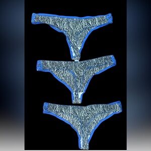 Bundle of 3 Zebra Print Women's thong Panties with Blue Accents plus size