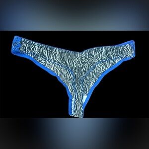 Stylish zebra print panties featuring vibrant blue accents. Perfect for adding a touch of fun to your intimates collection.