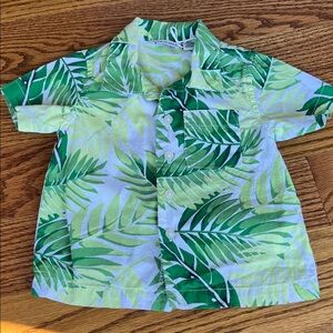 Brighten up your child's wardrobe with this tropical green leaf print shirt. Perfect for any casual outing.