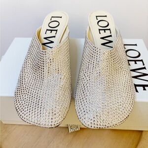 In great to excellent condition Loewe Petal crystal-embellished suede mules. Minor wear at heel area and a few missing crystals that’s not really noticeable.