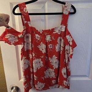 This stylish cold shoulder red top features a beautiful floral design, perfect for any occasion. The comfortable fit and vibrant color make it a must-have addition to your wardrobe.