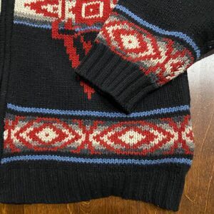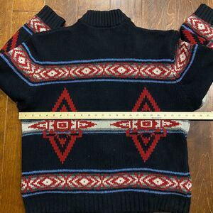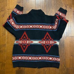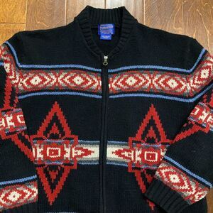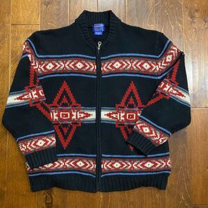 Pendleton Vintage Wool Knit Aztec Southwestern Zip Up Sweater Black Red Men's XL