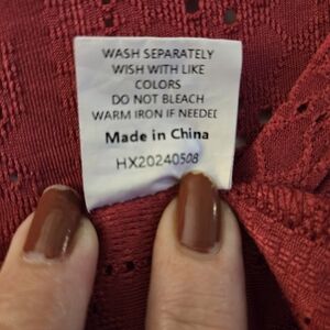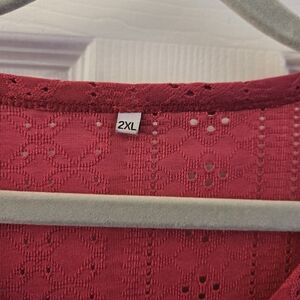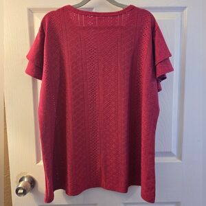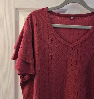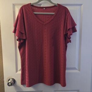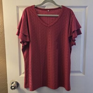 Elevate your style with this elegant red top featuring charming ruffle sleeves and eyelet design. Perfect for any occasion.